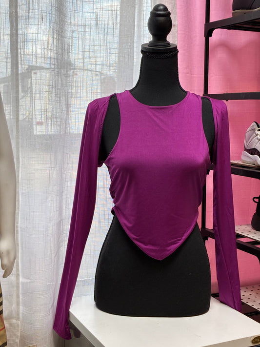 Fashion Nova Magenta long sleeve cut-out top with a handkerchief hem Women Size Large