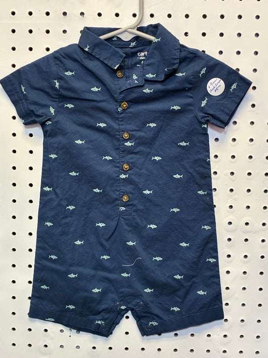 Carter's Child of Mine short-sleeve baby boy romper with a shark print Size 6-9M