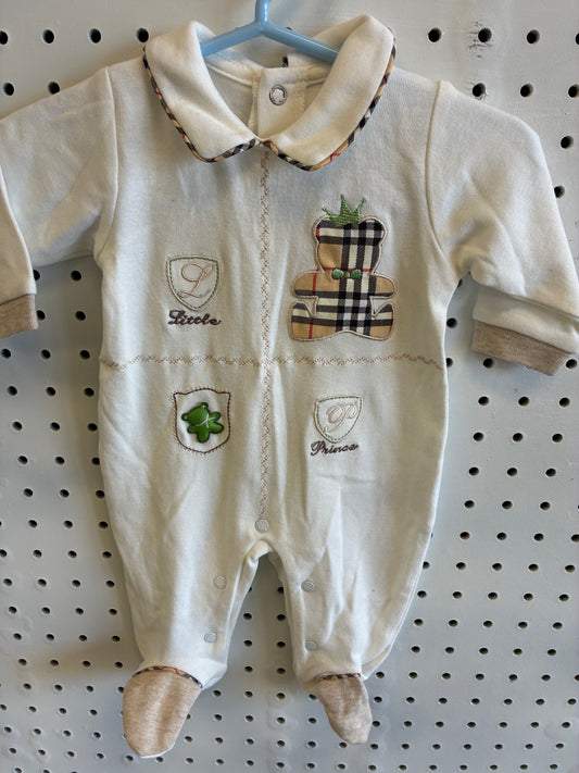 DE BACKERS Little Prince collared, footed baby onesie/romper Size Newborn 0 mons
