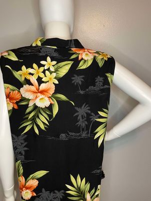 Sandwich Isle Sleeveless Button Down Black Floral Print Top~Women’s Size Large