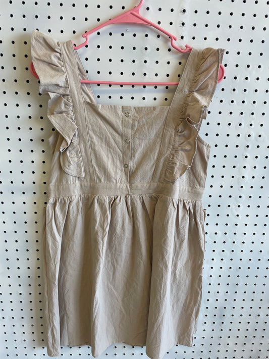Girls Ruffle Sleeveless Khaki Dress- Size 10/12
