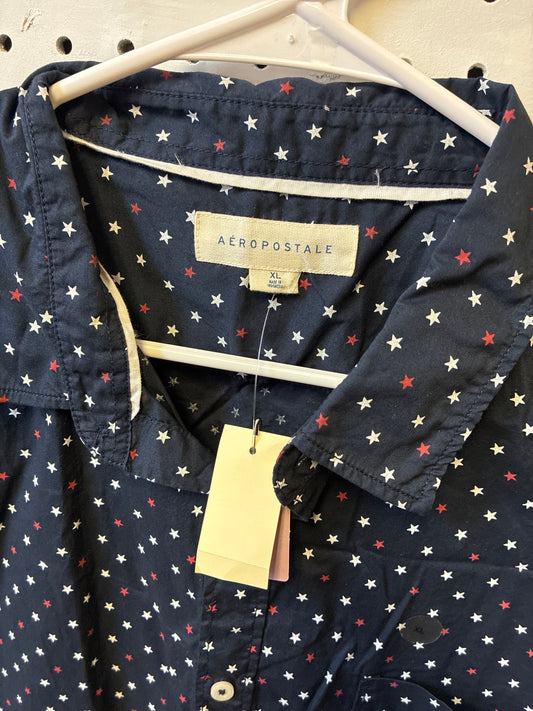 NWT Men's Aeropostle Size XL-Blue w/ Stars Short Sleeve Button Up Dress Shirt- New With Tag