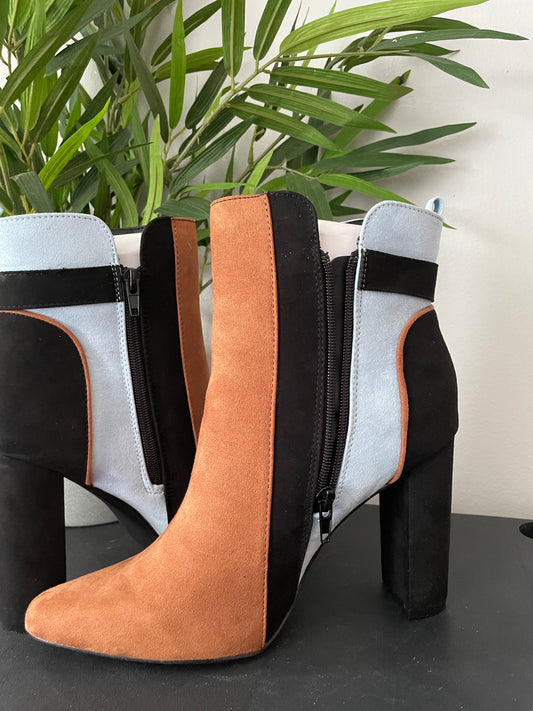 Linette Color Block Ankle Bootie Brown Multi Color Size 9.5~Great Condition