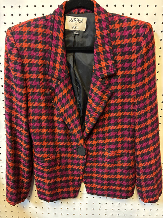KASPER Women's Size 8 Houndstooth Multicolor Tweed Wool Blazer