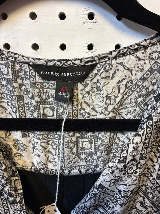 Rock & Republic Women's Pullover Plunge V Neck Blouse Tunic Black/Gray Sz XS