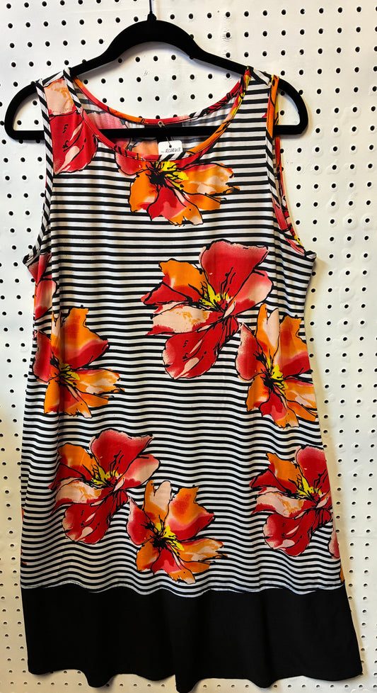 RN Studio Shift Dress Size XL Sleeveless Floral Black White Striped Tank