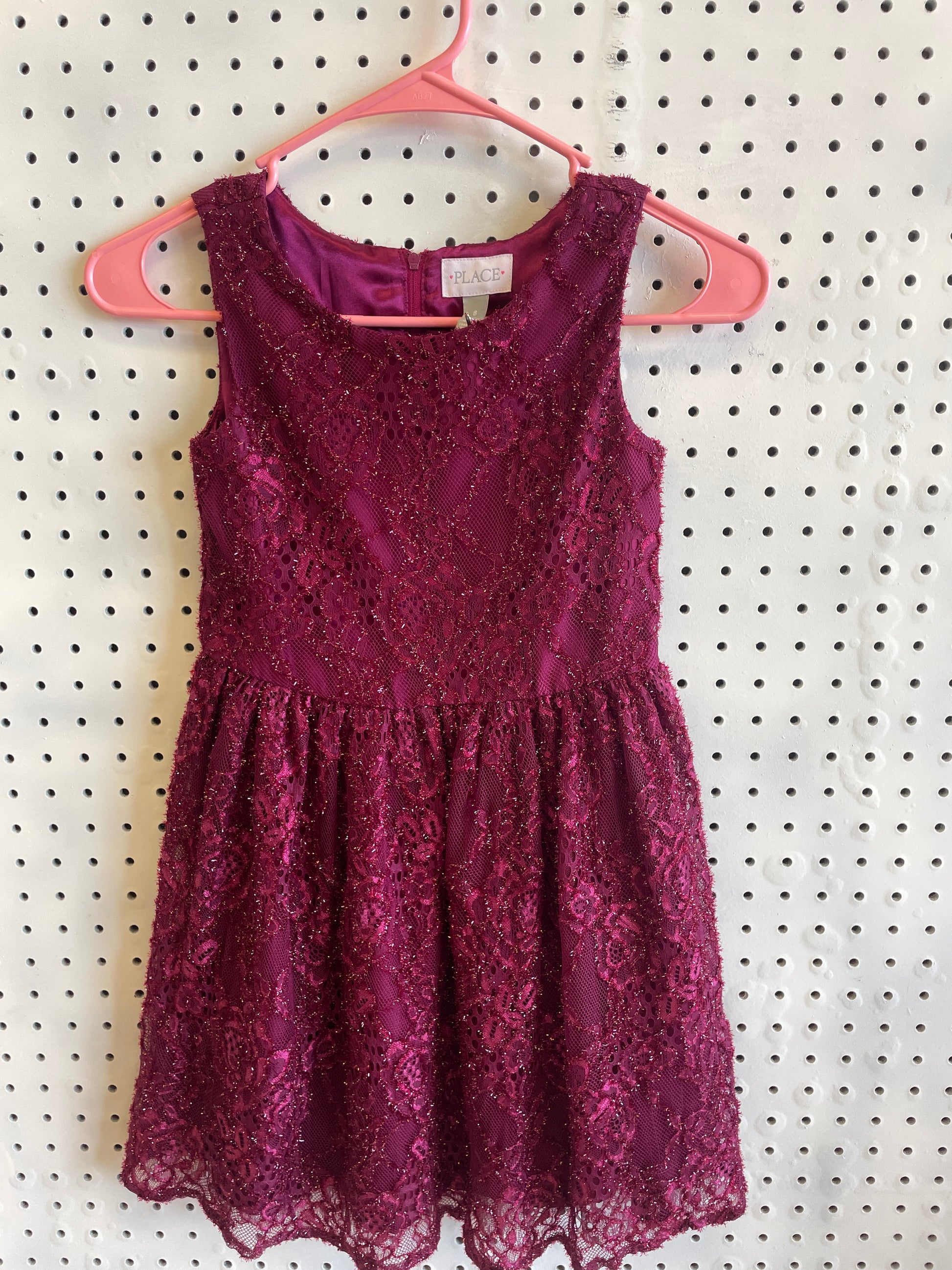Girls Shimmer Lace Dress - Burgundy Size 8
