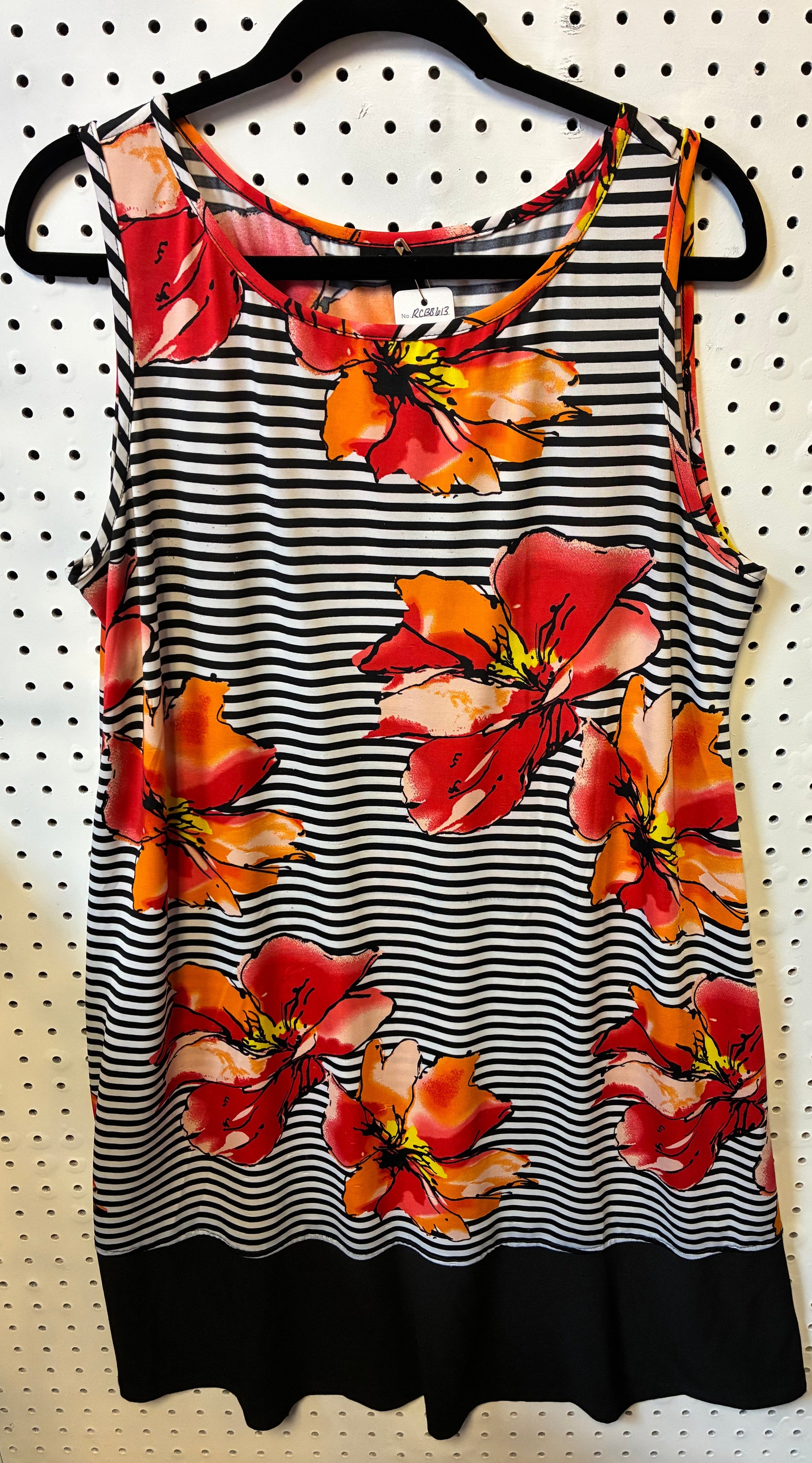RN Studio Shift Dress Size XL Sleeveless Floral Black White Striped Tank