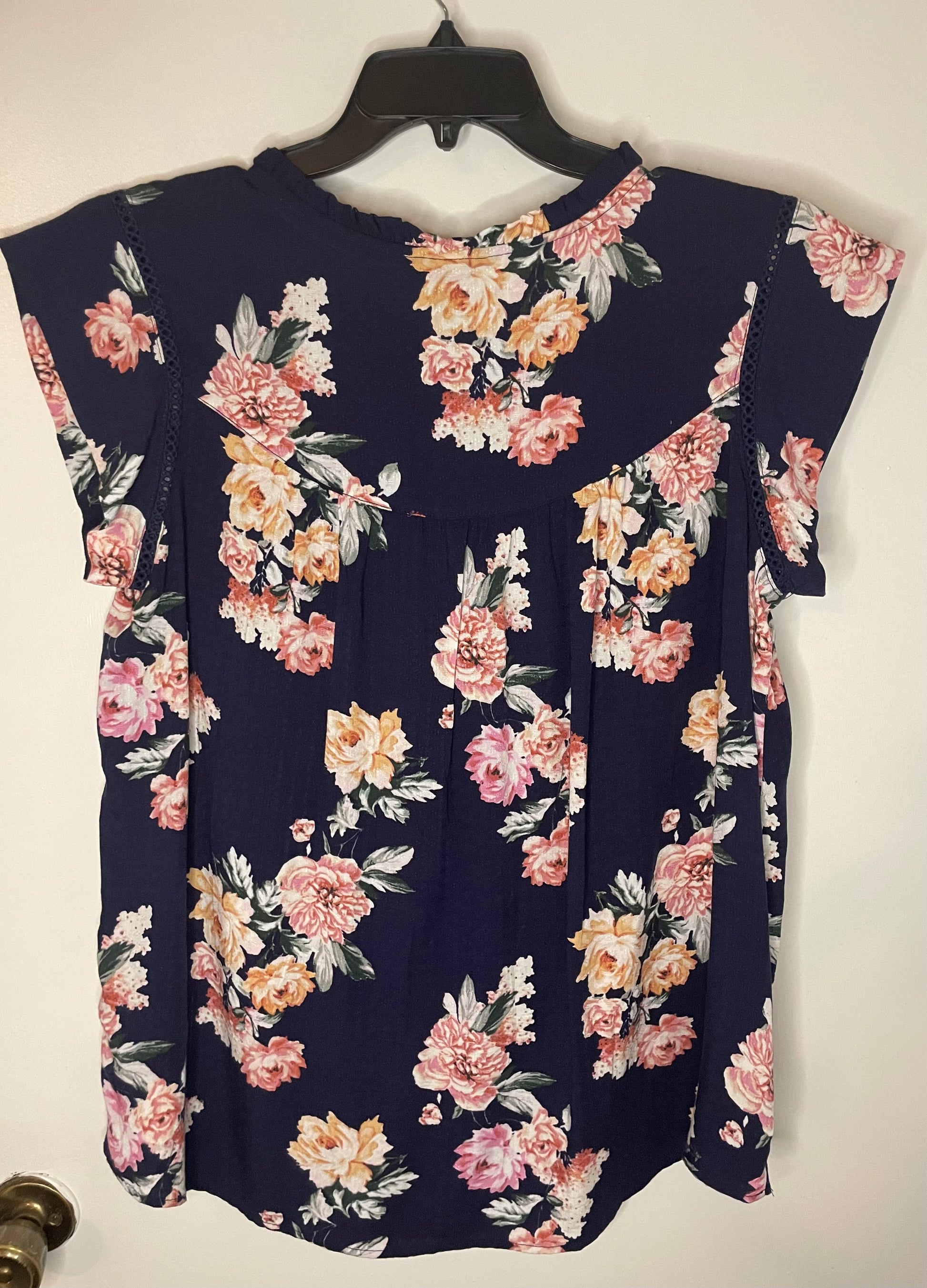#RCW011-Add a touch of femininity to your wardrobe with this beautiful **Buffalo Women's V-Neck Flutter Sleeve Floral Blouse**. The delicate floral pattern and flutter sleeves create a soft, romantic look that's perfect for any occasion. With its flattering V-neckline and flowy fit, this blouse effortlessly pairs with your favorite jeans or skirts for a chic, put-together outfit. In excellent condition, it looks as good as new and is ready to be a staple in your closet.