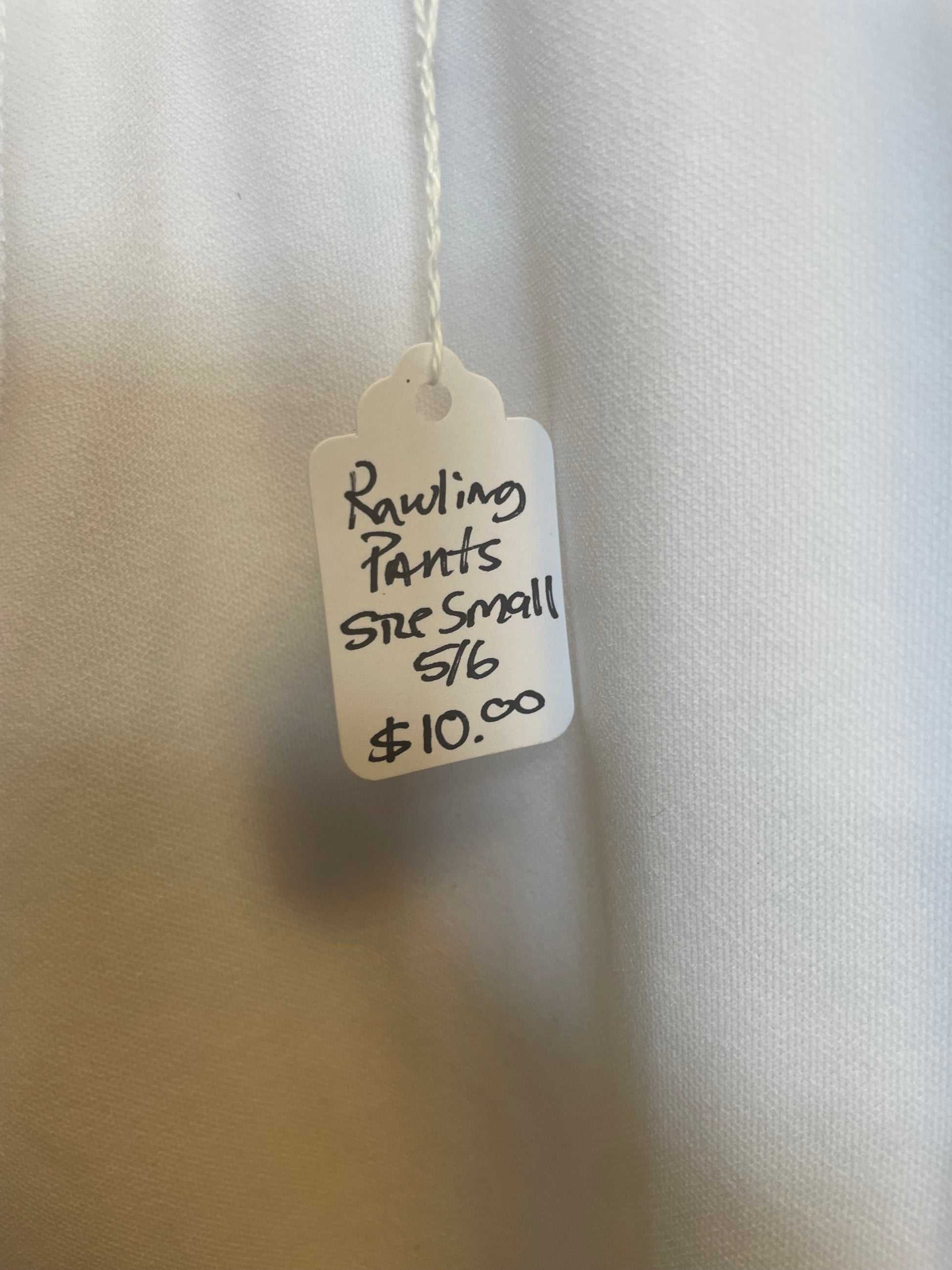 Rawlings Pants in Size 5/6 and white are perfect for young athletes looking for comfort and style on the field or during practice.
