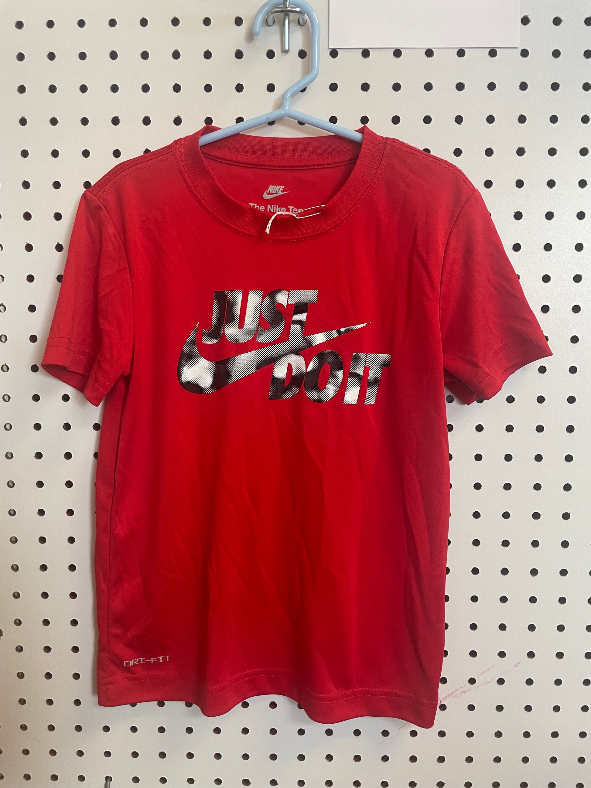 The Red & Black Nike Splinter T-shirts in Boys Size 5/6 feature a bold and sporty design, perfect for active kids.
