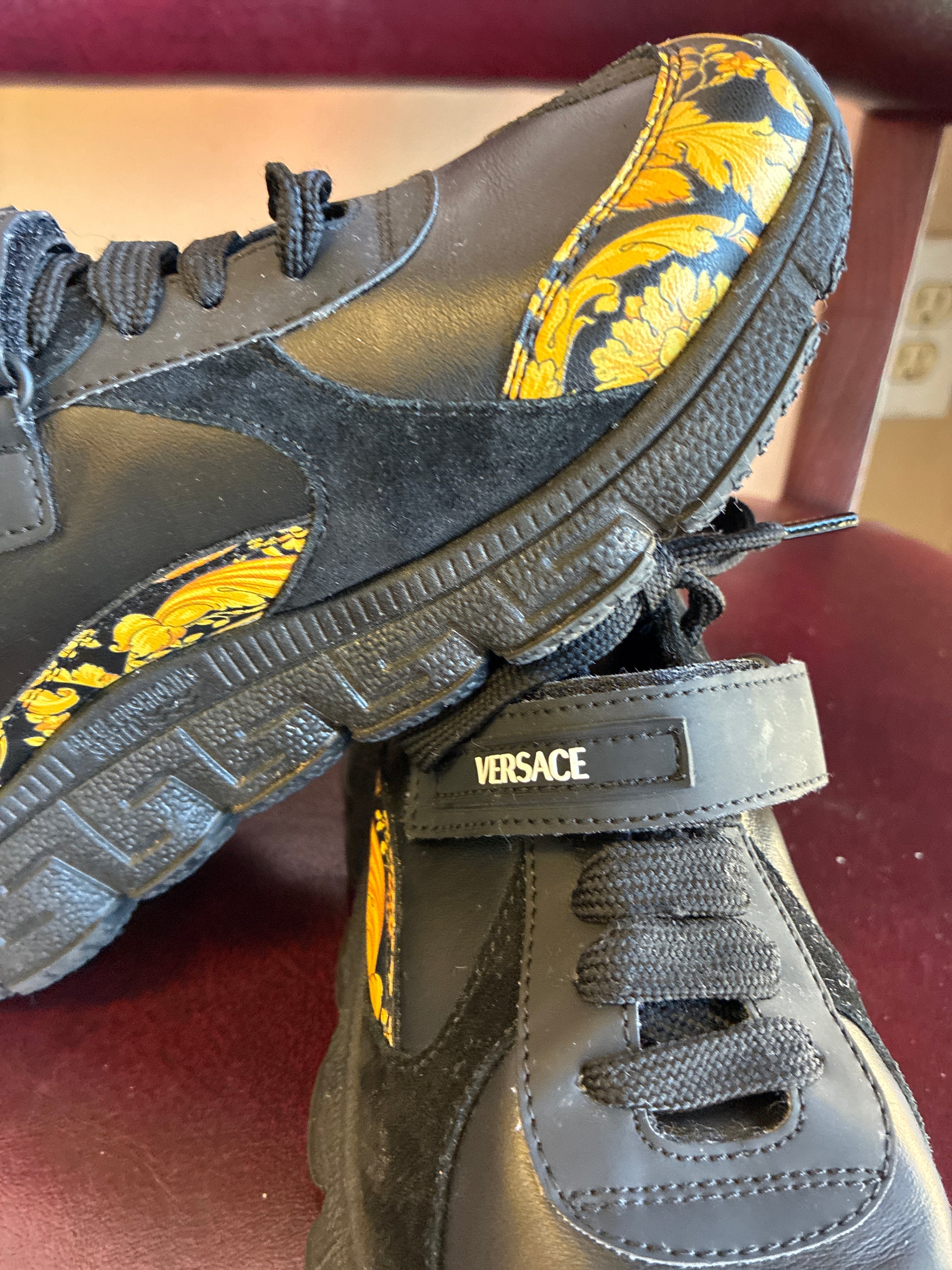 VERSACE-Kids' Trigreca Leather Sneakers In Blackgold Size 1.5 Youth